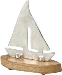 ŁÓDKA NA PODSTAWIE 15X5X17CM SREBRNA