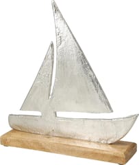ŁÓDKA NA PODSTAWIE 25X6X27CM SREBRNA