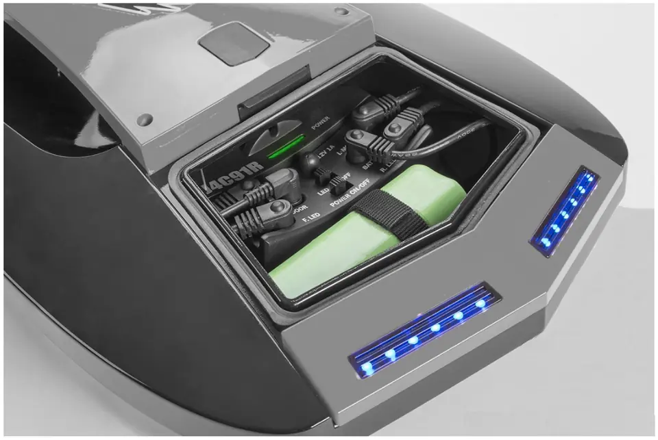 Widoczność przy 200 metrowym zasięgu nie stanowi problemu dzięki dobrze widocznemu żółtemu pokładowi. Podświetlane diody LED z przodu i z tyłu łodzi typu "Bait Boat" wyraźnie wskazują zarówno położenie, jak i orientację jednostki w warunkach słabego oświetlenia lub całkowitej ciemności, co sprawia, że jest to idealne narzędzie do ścigania ryb po zmroku. Ze zbiornikiem na zanętę o pojemności ok. 500g, dokładne rozrzucanie przynęty stało się o wiele łatwiejsze! Wystarczy ustawić się w pożądanym miejsu i nacisnąć przycisk na pilocie zdalnego sterowania a dolny właz powoli się otworzy. Jest to idealne rozwiązanie w przypadku łowienia na stałych wodach, takich jak jeziora czy stawy, gdzie zanęta opada na dno w linii prostej ze względu na brak prądów. Cicha praca i nisko profilowa sylwetka sprawiają, że Bait Boat jest równie niewykrywalny jak kajak.