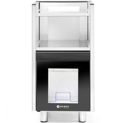 Kod producenta: 209080Lodówka marki Hendi sprawdzi się do serwowania kawy z zawsze świeżym, schłodzonym mlekiem. Może być połączona z każdym ekspresem automatycznym. Wyposażona została w dwie podgrzewane półki do filiżanek w ramę wykonaną ze stali nierdzewnej AISI 430. Pojemnik na mleko wykonany został z SAN o pojemności 3.5 l. Przeszklone drzwi wykonano z podwójnego szkła hartowanego, obudowę lodówki z ABS z panelami ze szkła hartowanego. Wejście na rurkę ssącą do mleka znajduje się z boku urządzenia, do bezpośredniego połączenia z każdym ekspresem automatycznym. Oświetlenie LED posiada 7 kolorów. Urządzenie wyposażono w 3 niezależne włączniki, dla oświetlenia LED, dla chłodziarki, dla podgrzewacza. Czynnik chłodniczy wykorzystany w lodówce to przyjazny dla środowiska R600A. Temperaturę można ustawić w zakresie 0-10deg;C.Cechy produktu: