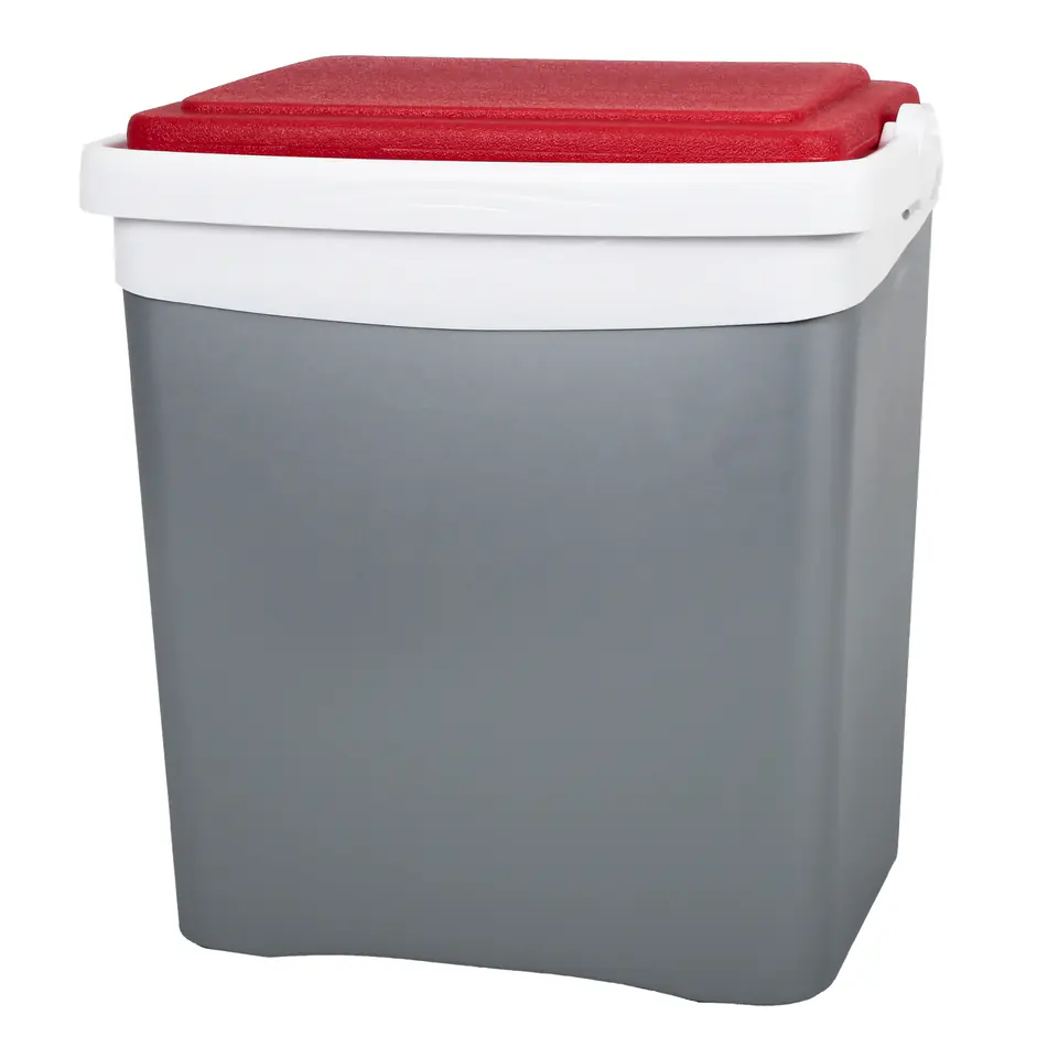 Bardzo wygodna i wydajna lodówka przenośna. Wyprodukowana z materiałów nadających jej wytrzymałość i trwałość. Izolacja termiczna wiadra i pokrywy, zapewnia nawet w gorące letnie dni, utrzymanie nieskiej temperatury wewnątrz pojemnika. Na spodzie dekla wytłoczone cztery mocowania aby stabilnie ustawić kubki lub puszki.