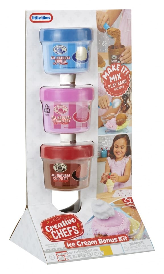 Zestaw Creative Chefs - Uzupełnienie do lodów to doskonała propozycja dla dzieci, które uwielbiają twórczą zabawę i kulinarne przygody. Dzięki realistycznym akcesoriom kuchennym oraz wielokrotnego użytku masie plastycznej Make It! Mix, maluchy mogą tworzyć własne wersje lodów w rożku czy lodowych kanapek, rozwijając przy tym swoją wyobraźnię i zdolności manualne. Zestaw zachęca do odgrywania ról, wspiera kreatywność i interakcję, a po połączeniu z innymi elementami serii pozwala stworzyć kompletną, pełną pomysłów kuchnię do zabawy.