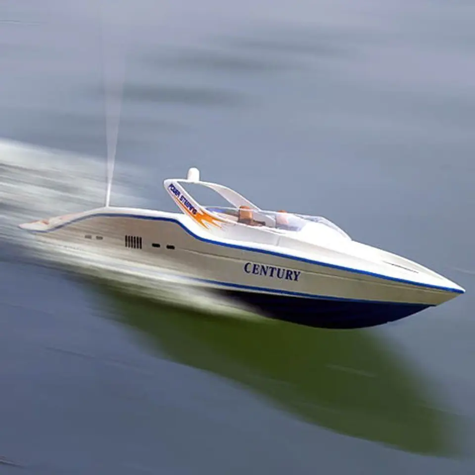 realistyczny wygląd.Model jest zwrotny i szybki dziękisystem zabezpieczenia przed odpaleniem na "sucho". wbudowane zabezpieczenie wyłączające silniki po wyjęciu z wody.Model jest sterowany dwukanałową w pełni proporcjonalną aparaturą o zasięgu dochodzącym do 200m!