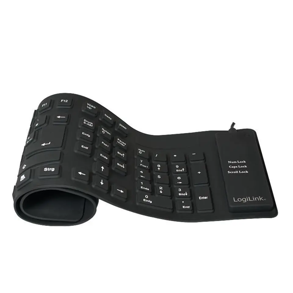 Logilink | Elastyczna wodoodporna klawiatura USB + PS/2 | ID0019A | Elastyczna klawiatura | Przewodowa | DE | Czarny