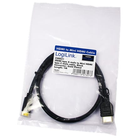 | Opis: | LogiLink HDMI cable, Mini-C/M to A/M, 4K/30 Hz, black, 1 m |