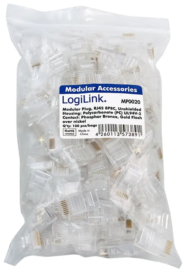 Wtyki RJ45 8P8C UTP do kabli płaskich, 100szt.