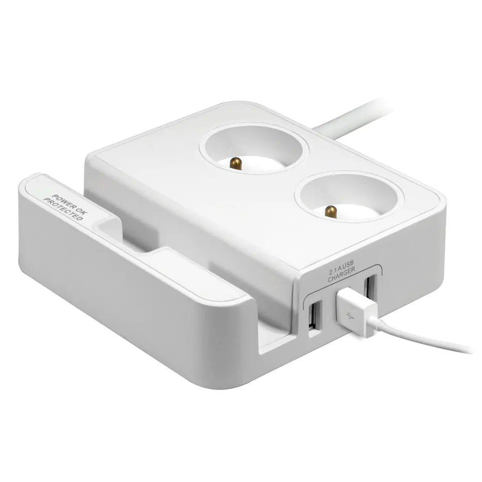 Specjalnie zaprojektowana konstrukcja ochrony przeciwprzepięciowej i jednocześnie stacji ładowania daje solidne i bezpieczne wsparcie Twojego urządzenia. Gumowa wkładka ogranicza możliwość wyślizgnięcia się urządzenia z podstawy oraz zabezpiecza obudowę tabletu lub telefonu przed porysowaniem. Atrakcyjny biały design sprawdzi się znakomicie w każdym wnętrzu czy to na biurku czy na półce w salonie.