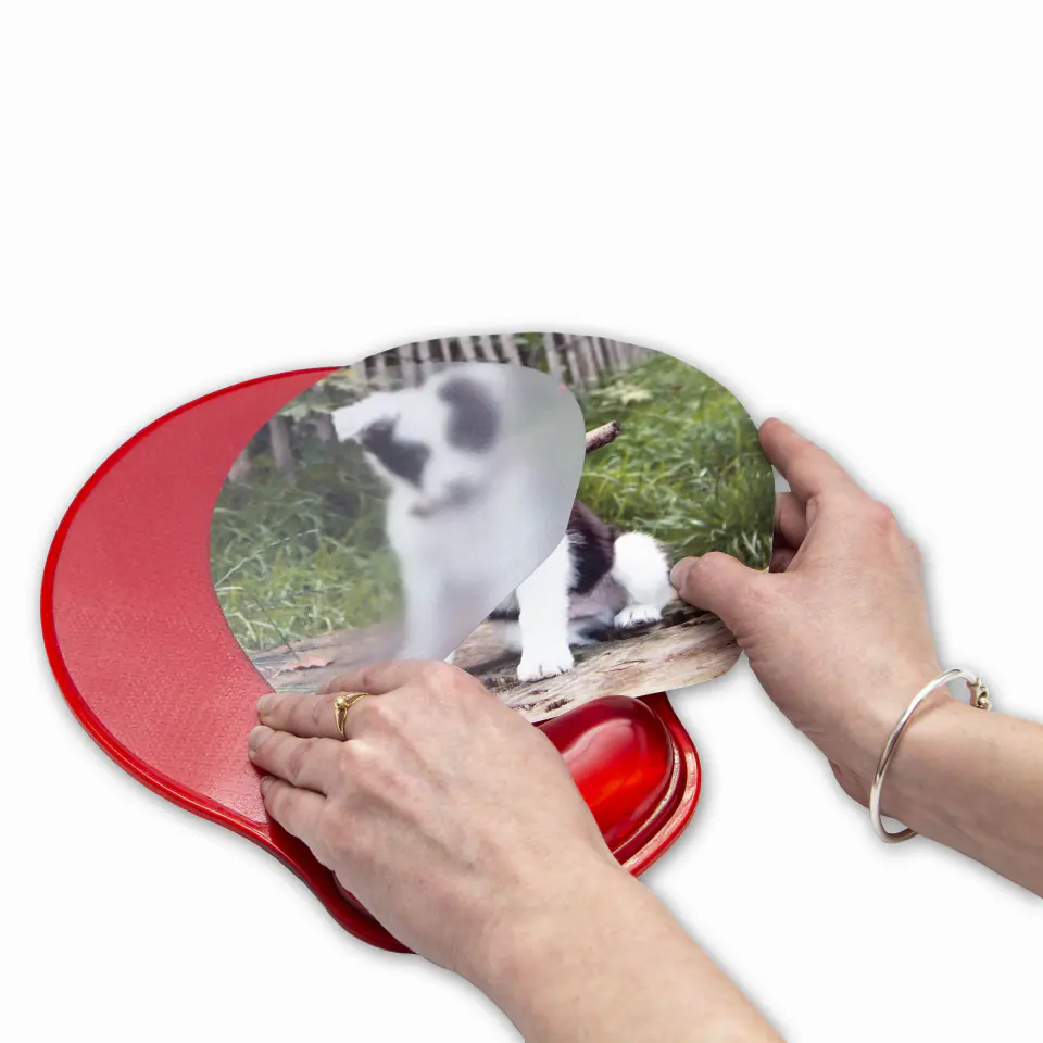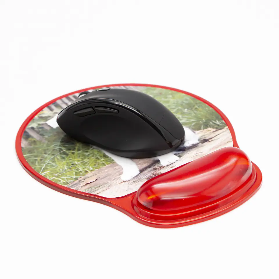 Żelowa podkładka pod mysz.Podkładka z miękką poduszką pod nadgarstek oraz specjalną kieszonką umożliwiającą wsunięcie zdjęcia lub grafiki.