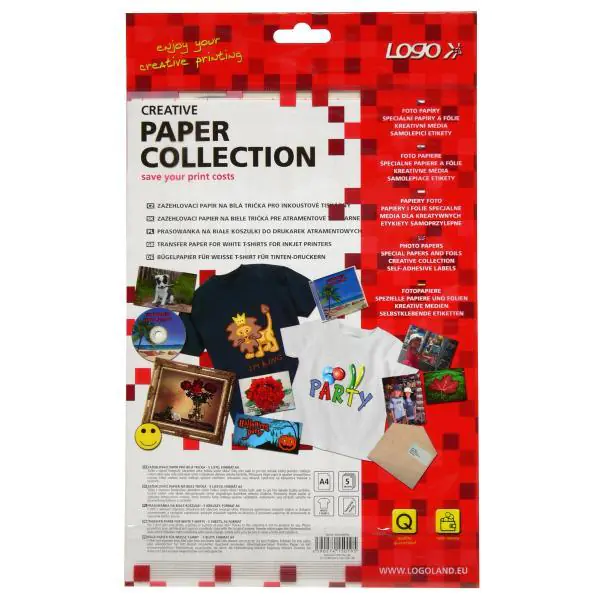 Logo prasowanka papier, do białej koszulki, biały, A4, 5 arkusza, do drukarek atramentowych, L