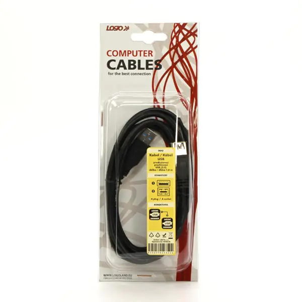 Logo Przedłużacz USB 3.0), USB A M - USB A F, 1,8 m, czarna, bliste