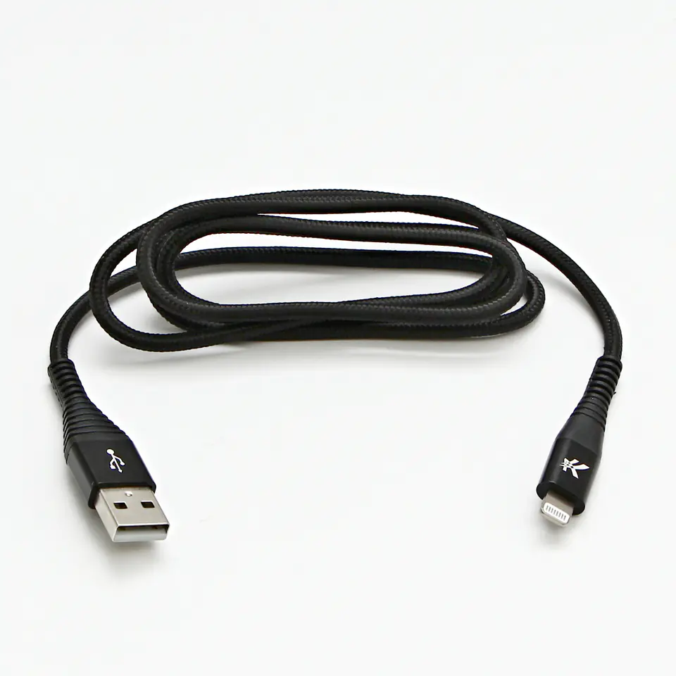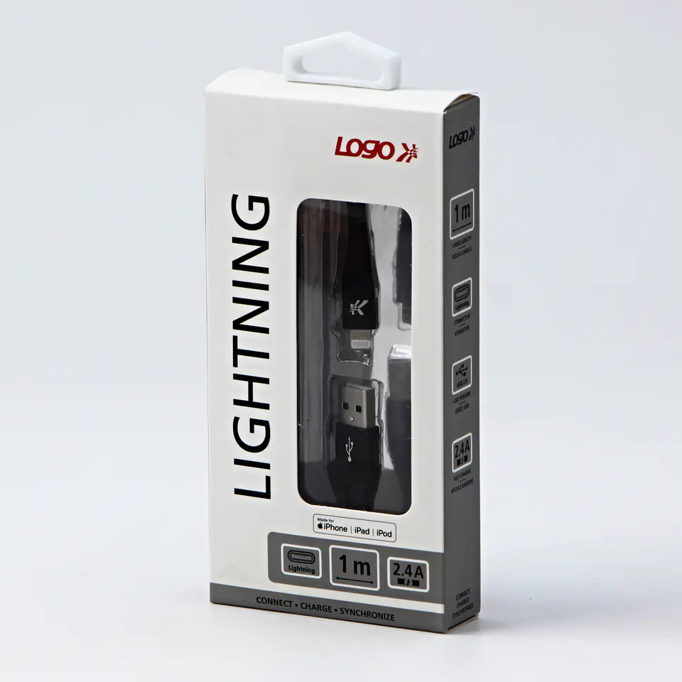 Logo USB kabel 2.0), USB A M - Apple Lightning M, 1 m, certyfikat MFi, czarny, box, oplot nylonowy, aluminiowa osłona złącz
