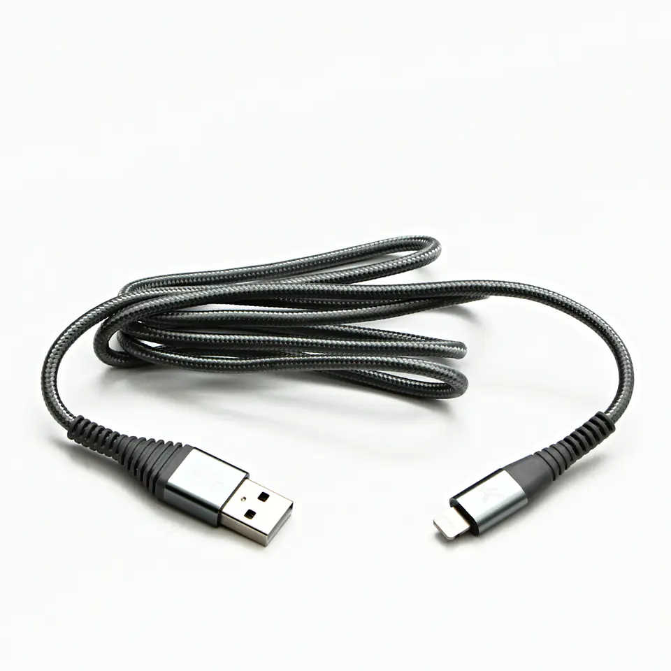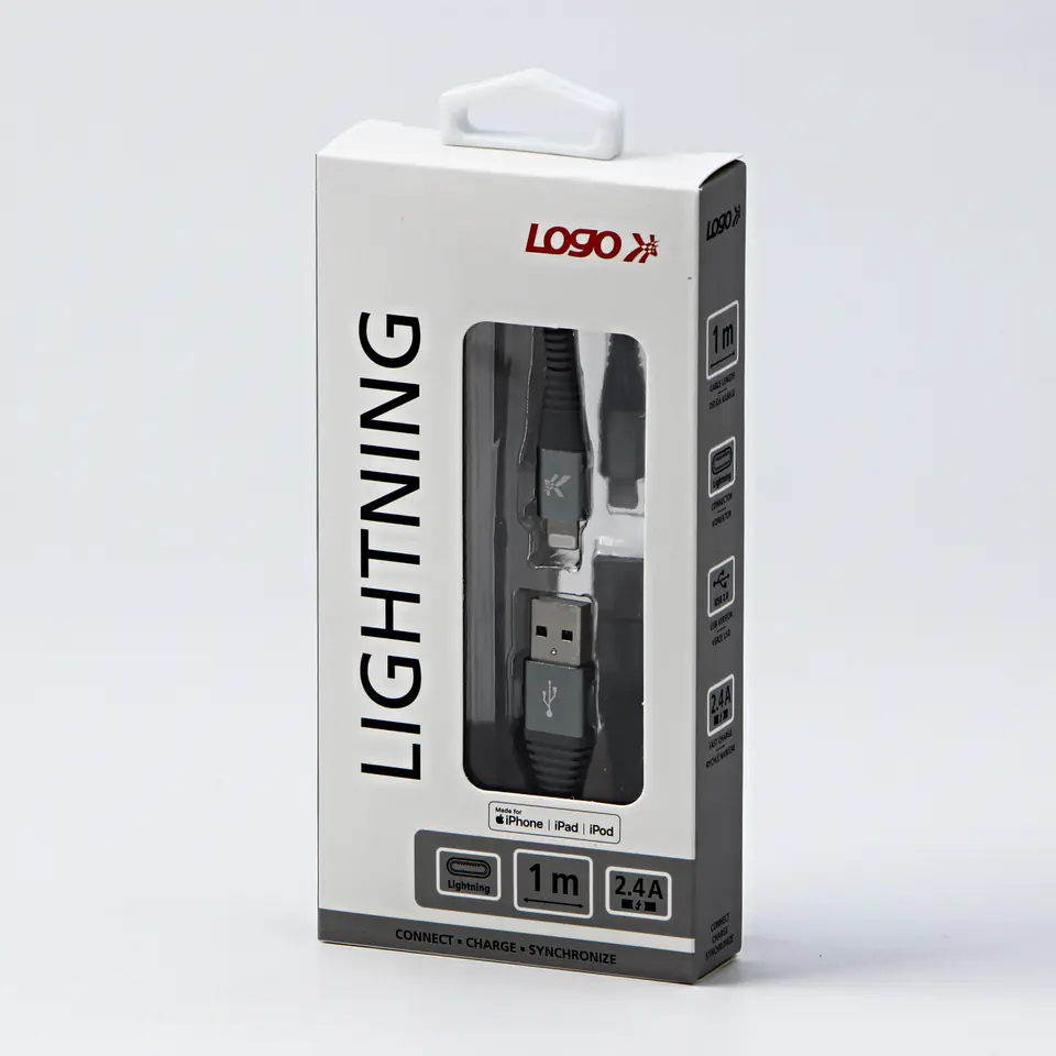 Logo USB kabel 2.0), USB A M - Apple Lightning M, 1 m, certyfikat MFi, srebrny, box, oplot nylonowy, aluminiowa osłona złącz