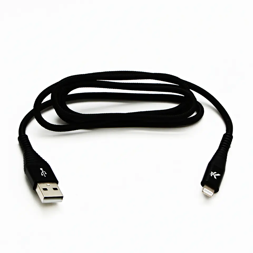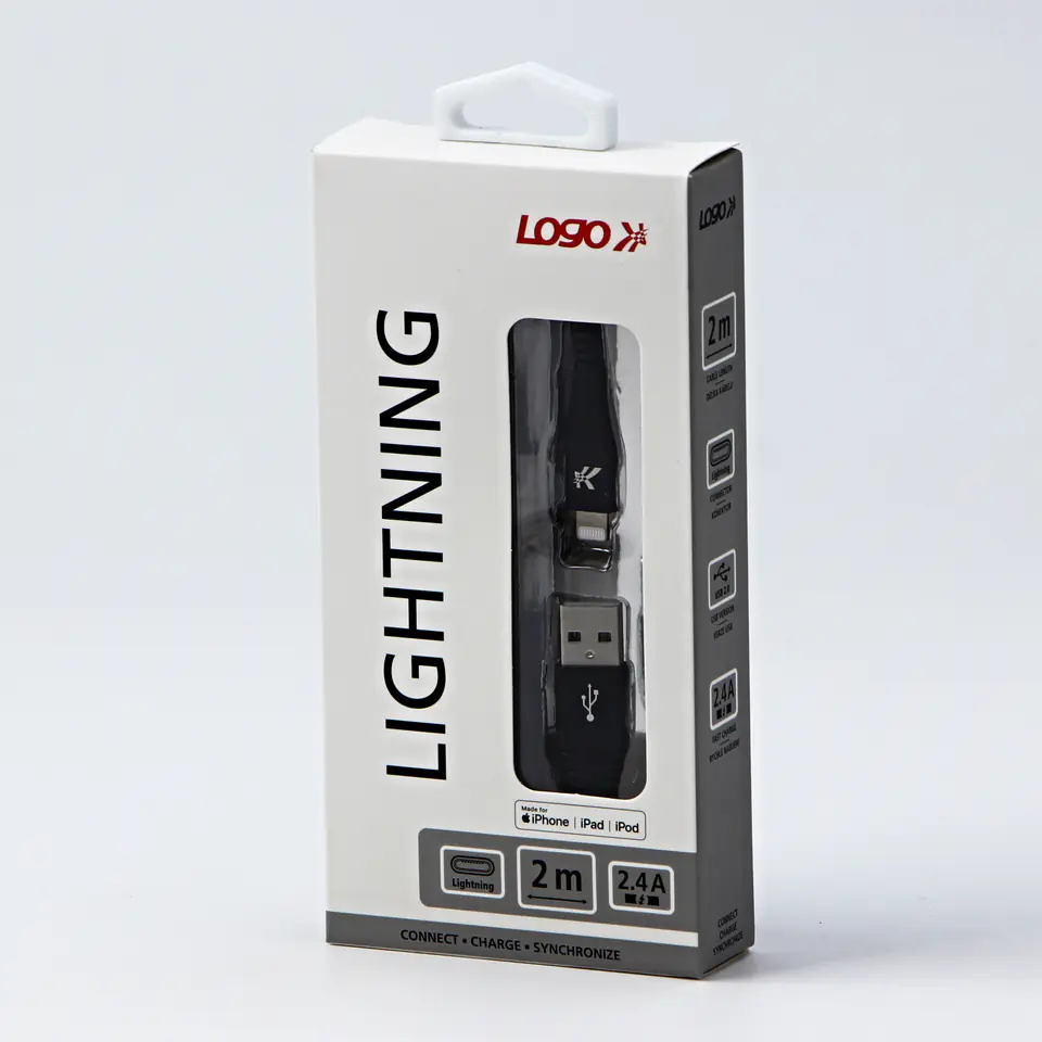 Logo USB kabel 2.0), USB A M - Apple Lightning M, 2 m, certyfikat MFi, czarny, box, oplot nylonowy, aluminiowa osłona złącz