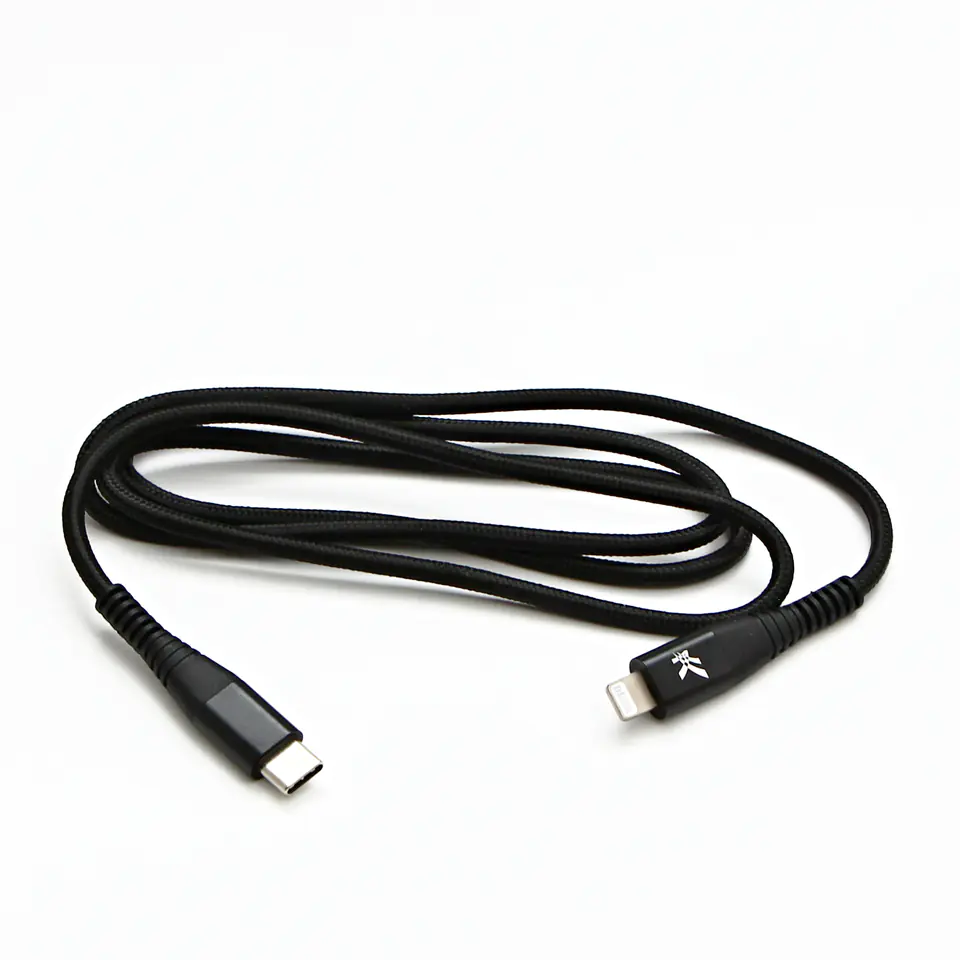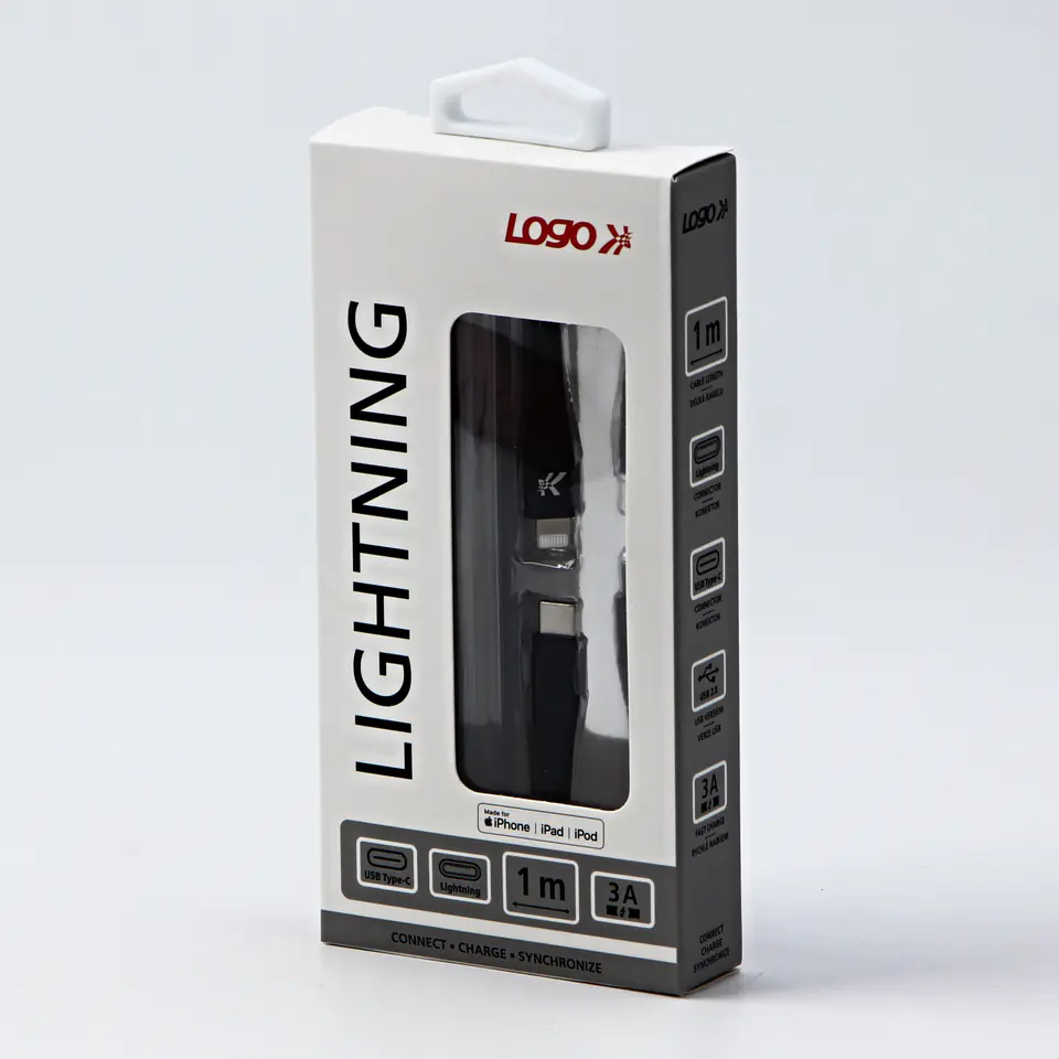Logo USB kabel (2.0), USB C M) - Apple Lightning M, 1 m, certyfikat MFi, czarny, box, oplot nylonowy, aluminiowa osłona złącz