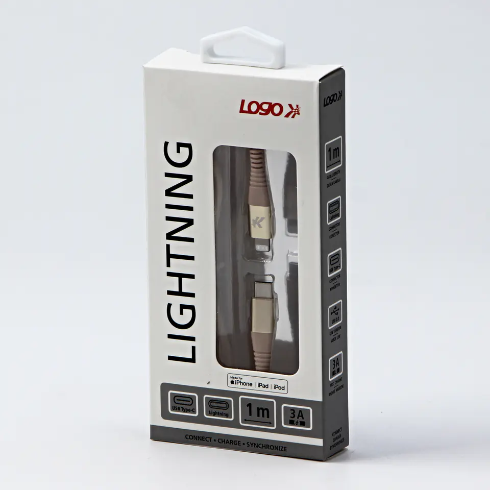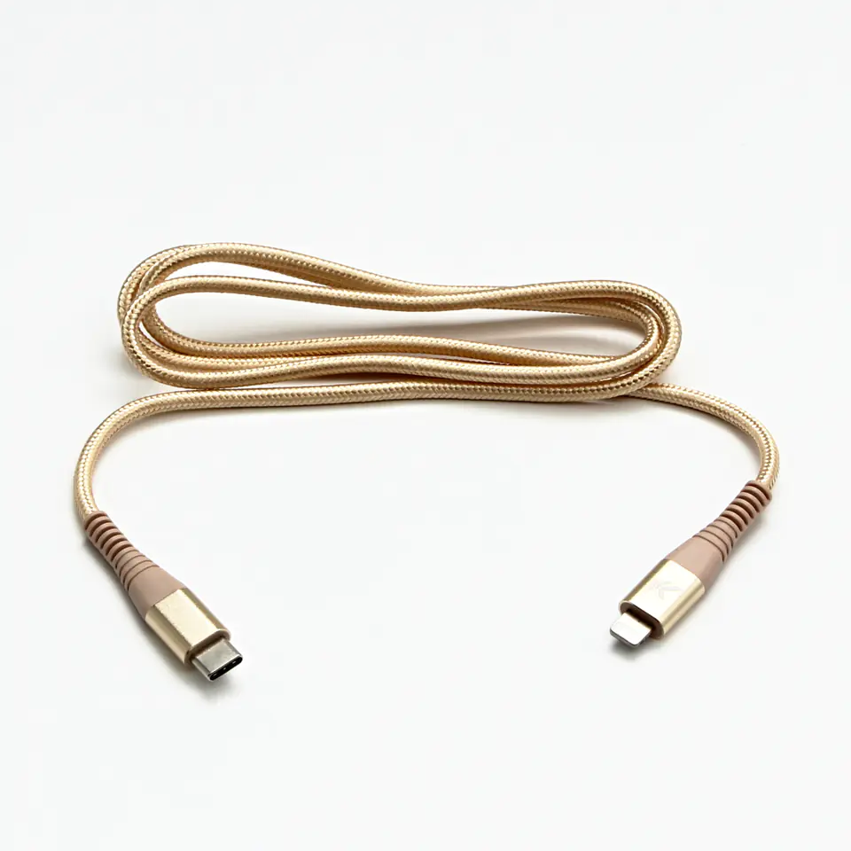 Logo USB kabel (2.0), USB C M) - Apple Lightning M, 1 m, certyfikat MFi, złoty, box, oplot nylonowy, aluminiowa osłona złącz