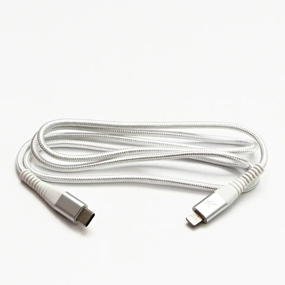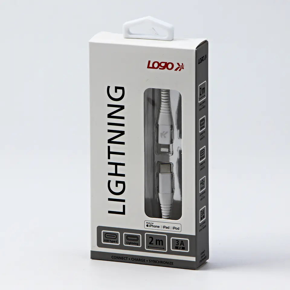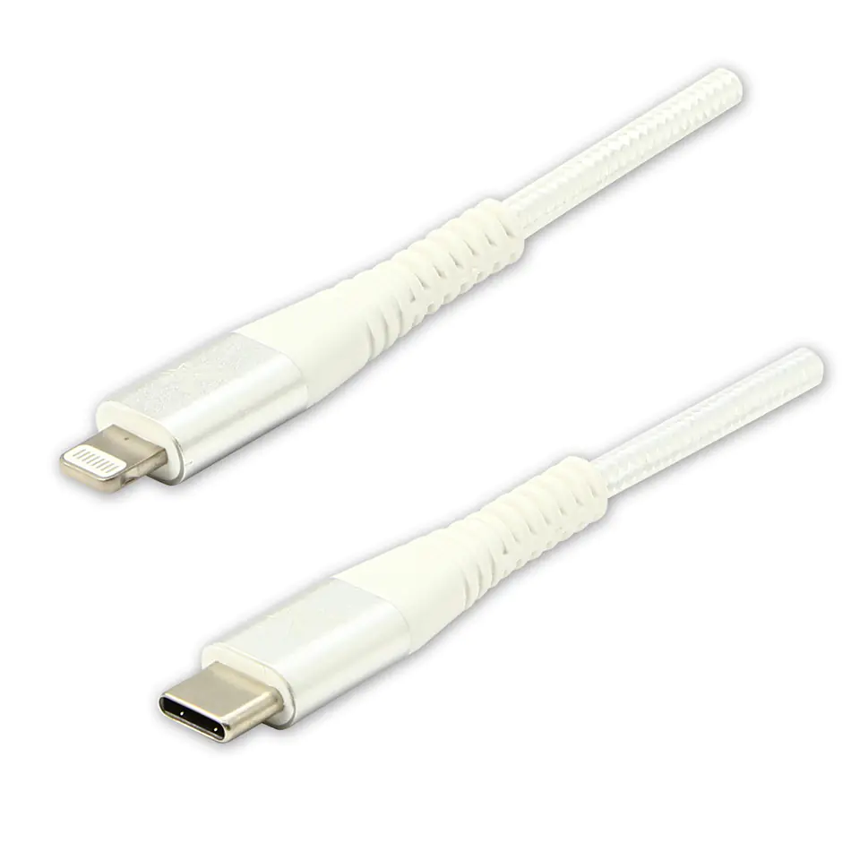 Logo USB kabel (2.0), USB C M) - Apple Lightning M, 2 m, certyfikat MFi, biały, box, oplot nylonowy, aluminiowa osłona złącz