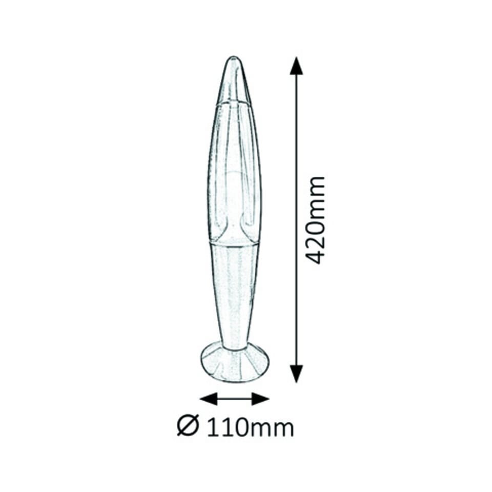 Cechy- Łączy w sobie nostalgiczny urok klasycznych lamp lawowych z nowoczesnym, kolorowym akcentem- Efekt płynącej lawy nie tylko przyciąga wzrok, ale także działa relaksująco- Pasuje do różnych stylów wnętrz- Wykonana z metalu i szkła- Wysokość: 42 cm