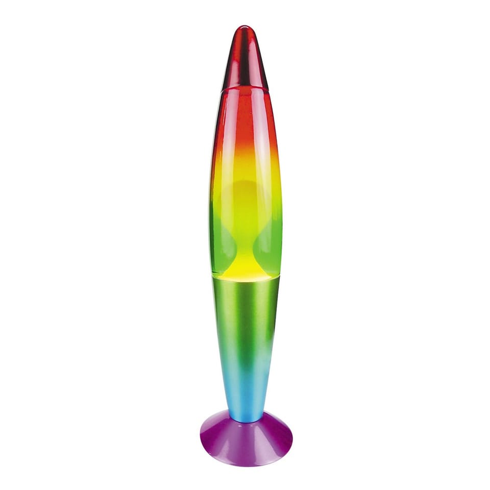 Smukła lampa dekoracyjna Lollipop będzie wspaniałym dodatkiem do wyposażenia salonu czy sypialni. Ta lampa z lawą o tęczowych barwach jest wykonana z metalu i szkła, a do jej oświetlenia można użyć jednej żarówki o mocy do 25 W. Typ oprawki to E14.