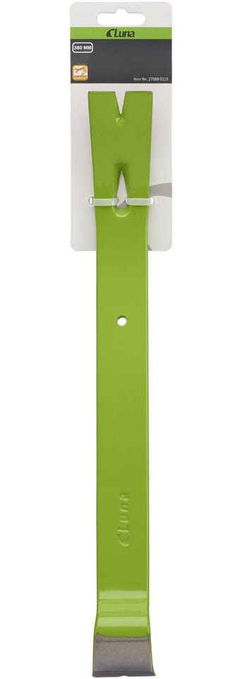 Łom wykonany z płaskownika. Przeznaczony do mniejszych i bardziej delikatnych prac wymagających podważania lub regulacji. Można używać jako skrobaka do usuwania resztek farby albo betonu przy mniejszych pracach betoniarskich. Kilka funkcji wyciągania gwoździ. Otwór do dołączenia zabezpieczenia narzędzia.