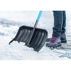 Cechy- Narzędzie do usuwania śniegu z dużych nawet nierównych powierzchni- Trzonek pokryty antypoślizgowym materiałem SAFETOUCH, który gwarantuje wygodny chwyt i chroni dłonie przed wyziębieniem w trakcie wykonywania pracy- Głowica o głębokości 150 mm pozwala na transport dużej ilości śniegu, a jej krawędź wykończona listwą aluminiową zwiększa odporność łopaty na uszkodzenia powstałe w wyniku uderzenia o kamienie lub twarde bryły śniegu i lodu- Wykonany z kompozytu uchwyt w kształcie litery D- Długi ergonomiczny trzonek gwarantuje prawidłową i stabilną postawę- Zastosowany materiał nie tylko zwiększa odporność na uszkodzenia, działanie soli i niskich temperatur, ale również sprawia że mokry, kleisty śnieg nie przylega do głowicy- Produkt polski- Szerokość i długość: 490 mm i 1400 mm- Do łopaty dołączona jest skrobaczka do szyb