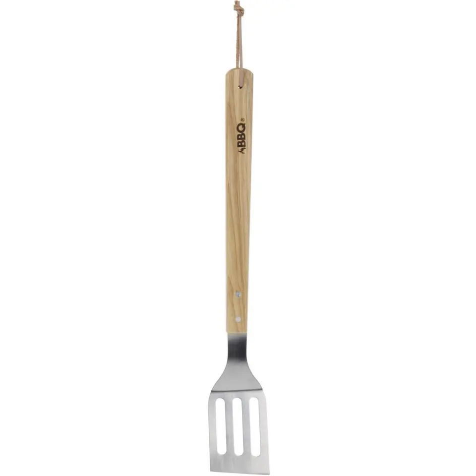 - Wymiar ok.: 47,5 x 7 x 2 cm (dł. x szer. x gr.)Długość rączki ok.: 30 cmWymiar łopatki: 7 x 10 cm (szer. x dł)Materiał: stal, drewnoKolor: srebrny, naturalne drewnoWaga netto: 0,210 kgWaga brutto: 0,280 kgMarka: BBQ Line
