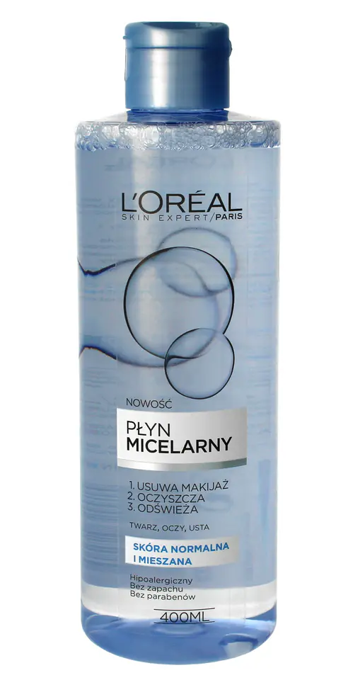 Płyn micelarny dla skóry normalnej i mieszanej ma wyjątkowo łagodną i skuteczną formułę,która usuwa makijaż oraz zanieczyszczenia,jednocześnie nie przesuszając skóry.