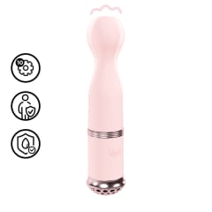 Masażer wykonany został z wysokogatunkowego, bezpiecznego dla ciała silikonu, co gwarantuje gładką powierzchnię i łatwe utrzymanie w czystości. Produkt jest w pełni wodoodporny, co pozwala na użytkowanie także pod prysznicem lub w wannie. Zasilanie akumulatorowe zapewnia do 55 minut pracy bez konieczności ładowania, a ładowanie odbywa się poprzez dołączony kabel USB.
