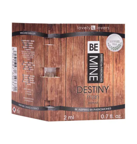 Intrygujący męski bukiet zapachowy serii BEMINE DESTINY powstał we Francji. Dzięki doświadczeniu marki LOVELY LOVERS wykorzystano molekularną formułę I-L-Molecules (INTENSE LOVE MOLECULES). Jest efektem badań nad ponad 300 atraktantami zapachowymi w różnych proporcjach. Wyselekcjonowano te, które w największym stopniu oddziałują na płeć przeciwną wydobywając maksimum ponętności z kompleksu olejków zapachowych. Formułę I-L-Molecules dopracowano tak, by synergicznie łączyła się z zapachem męskiej skóry tworząc niepowtarzalną całość. Męska kompozycja DESTINY jest unikalnym połączeniem silnych nut skóry, drewna i dymu przeplatających się z ciepłą słodyczą soczystej pomarańczy wraz afrodyzjakowymi kwiatami. Najwyższa koncentracja i jakość zastosowanych składników pozwala stworzyć uwodzicielską aurę pełną męskich wibracji i flirtującej elegancji.