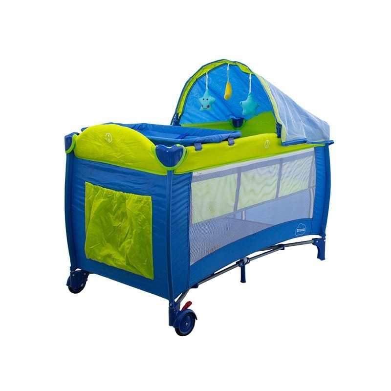 Dwupoziomowe łóżeczko podróżne z przewijakiem dream niebieski - Eurobaby. Waga dziecka do 14kg, bardzo trwała lekka konstrukcja, dwa kółka z blokadami do przemieszczania łóżeczka, materacyk, kieszeń na zabawki, torba podróżna na łóżeczko, wygodny i łatwy system rozkładania. Trzy odpinane zabawki. Składany daszek oraz dodatkowe wejście boczne zapinane na zamek. Przewijak posiada pas bezpieczeństwa oraz uchwyty mocujące go na bokach łóżeczka zapobiegające przesuwaniu się go. Zdemontowany przewijak można przymocować do boku łóżeczka za pomocą specjalnych uchwytów. Funkcje łóżeczka: - Solidna i lekka konstrukcja - Łatwy system składania i rozkładania - Małe gabaryty po złożeniu - 2 koła do łatwiejszego przemieszczania - Pokrowiec na łóżeczko - Daszek z moskitierą - Kieszeń na zabawki - Boczne wejście na zamek - Przewijak Informacja techniczna: Poziom 1: głębokość 34cm Poziom 2: głębokość 58cm Wymiar przewijaka: szerokość: 41cm długość: 65cm Wymiary łóżeczka po rozłożeniu: wysokość: 82cm / 115cm (z daszkiem) szerokość: 64cm długość: 126cm Wymiary łóżeczka po złożeniu: wysokość: 79cm szerokość: 22cm długość: 25cm Waga dziecka do 14Kg Waga łóżeczka: 10,8Kg Gwarancja: 12 miesięcy Instrukcja w języku polskim