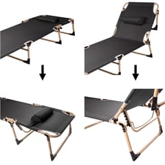 Łóżko polowe LUARO turystyczne składane leżak biznesowy 193 cm czarny