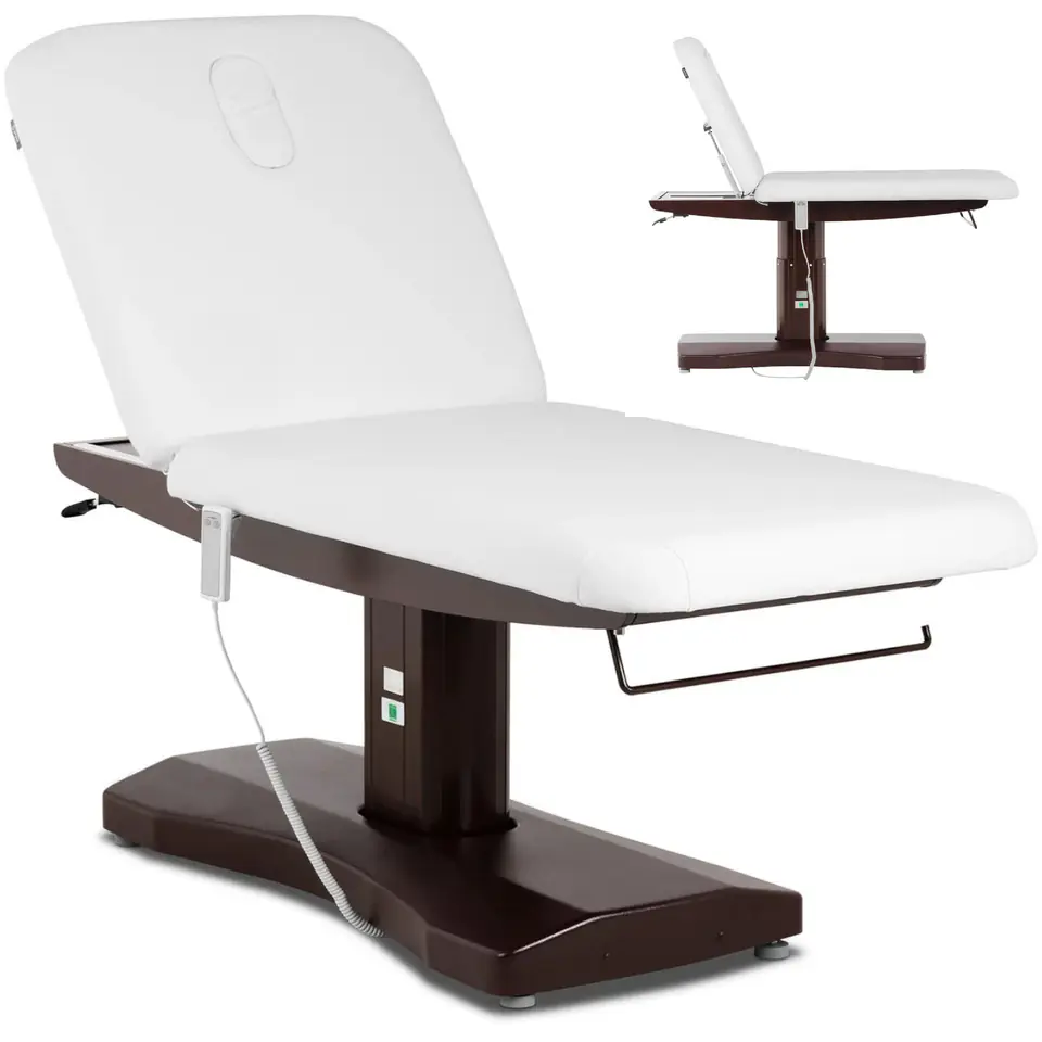 Kod producenta: 10040428Fotel marki Physa sprawdzi się w salonach piękności i stylizacji rzęs, gabinetach podologicznych, ośrodkach odnowy biologicznej oraz pracowniach tatuażu. Nadaje się również jako łóżko do masażu. Mocny silnik pozwala na szybką regulację wysokości w zakresie 1360 ~ 1610 mm i oparcia o wymiarach 770 x 750 mm pod kątem 0 ~ 76deg;. Siedzisko o wymiarach 1250 x 750 mm można ustawiać w zakresie 660 ~ 910 mm. W razie potrzeby można wyjąć poduszkę. Miękkie wypełnienie o grubości 100 mm pokryte zostało prostą w czyszczeniu, odporną na wodę oraz olejki ekoskórą PU. Uchwyt na rolkę papierowego ręcznika pozwala mieć ją zawsze pod ręką. Udźwig fotela wynosi 200 kg za sprawą solidnej konstrukcji ze stali.Cechy produktu: