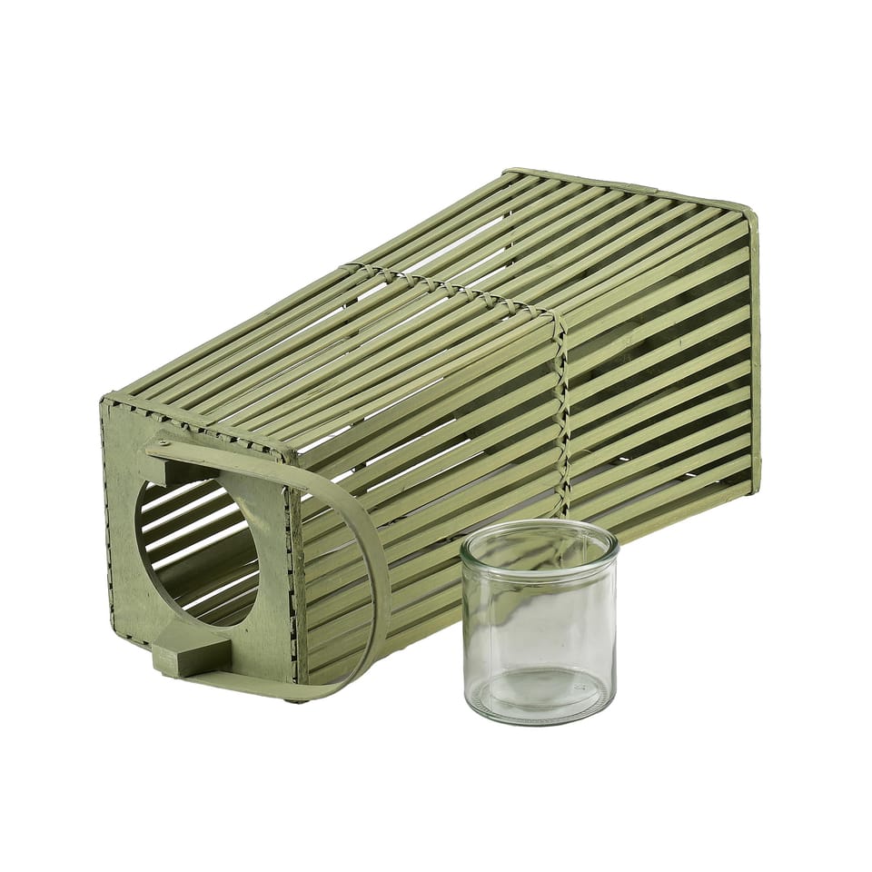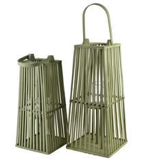 LUCIE GREEN Lampion wiklinowo-drewniany marki MONDEX since 1986 to elegancki i wyrafinowany dodatek dekoracyjny, który łączy w sobie naturalne materiały z nowoczesnym designem. Jego subtelny odcień zieleni wprowadza do wnętrza świeżość i harmonię, doskonale komponując się z aranżacjami w stylu boho, skandynawskim czy rustykalnym.Wykonany z połączenia naturalnej wikliny i drewna, lampion zachwyca swoim starannym wykończeniem oraz unikalną strukturą. Pionowe deseczki drewniane nadają mu elegancji i lekkości, a jednocześnie tworzą efektowne refleksy świetlne, kiedy świeca zostanie zapalona. Ciepły blask przenikający przez wiklinową konstrukcję tworzy przytulny i romantyczny nastrój, idealny na wieczory spędzone w gronie najbliższych.Lampion o wymiarach 26,5cm szerokości i 57cm wysokości ma smukłą i harmonijną sylwetkę, która pięknie prezentuje się zarówno we wnętrzach, jak i na tarasie czy w ogrodzie. Delikatna zieleń nadaje mu świeżości i naturalnego uroku, wprowadzając do przestrzeni element spokoju i relaksu.Wyposażony w praktyczny uchwyt, LUCIE GREEN jest łatwy do przenoszenia i zawieszenia, co zwiększa jego funkcjonalność oraz wszechstronność zastosowań. Doskonale sprawdzi się jako nastrojowe oświetlenie na balkonie, w ogrodzie lub jako dekoracyjny akcent w salonie.LUCIE GREEN to połączenie naturalnego piękna z funkcjonalnym designem. Jego subtelny, zielony odcień i staranne wykonanie sprawiają, że jest nie tylko źródłem nastrojowego światła, ale również eleganckim dodatkiem, który wzbogaca każdą przestrzeń o wyjątkowy klimat i styl. Ten lampion to idealny wybór dla osób ceniących prostotę, naturalne materiały oraz ponadczasową elegancję.26,5X26,5XH57cm