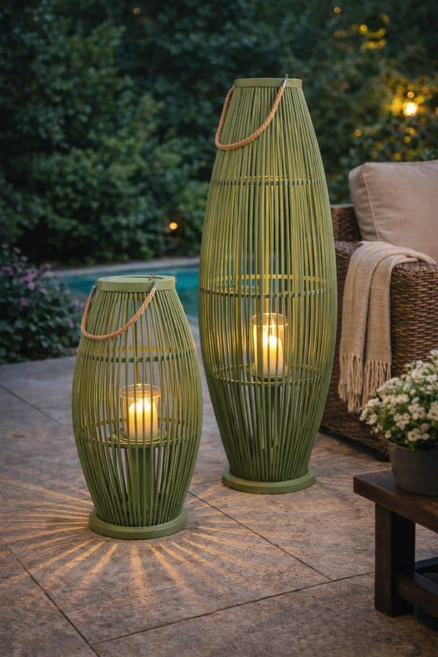 LUCIE GREEN Lampion drewniany zielony z szklanym wkładem Mondex since 1986Lampion LUCIE GREEN to elegancka ozdoba, która wprowadza ciepły i przytulny klimat do każdego wnętrza oraz ogrodu. Dzięki swojej unikalnej formie i kolorze stanowi idealne rozwiązanie dla osób pragnących wzbogacić swoją przestrzeń o wyjątkowy element wystroju.Kluczowe cechyWykonanie z wysokiej jakości drewnagładka powierzchnia z przyjemnym odcieniem zielonymszklany wkład lampionu dodający elegancjiaerodynamiczny kształt wpływający na estetycznośćprzyciągający uwagę designDlaczego warto wybrać LUCIE GREENLampion LUCIE GREEN z drewna to połączenie nowoczesności i klasyki. Jego delikatny, zielony odcień doskonale wpisuje się w aktualne trendy aranżacyjne. Dzięki ażurowej formie, światło prześwitujące przez drewno tworzy magiczny nastrój przy każdej okazji. To idealny wybór zarówno do domu, jak i na taras, który nadaje się na każdą porę roku.Zastosowanie i pielęgnacjaLampion LUCIE GREEN jest nie tylko stylowym elementem dekoracyjnym, ale również praktycznym. Aby cieszyć się jego pięknem przez długie lata, zaleca się regularne czyszczenie drewna przy użyciu delikatnych środków czyszczących oraz unikanie wystawiania na intensywne działanie warunków atmosferycznych.Dane techniczneWymiary 35x35x84cm/106cmMateriał drewno i szkłoKolor zielonyKompatybilność do użytku wewnętrznego oraz zewnętrznego