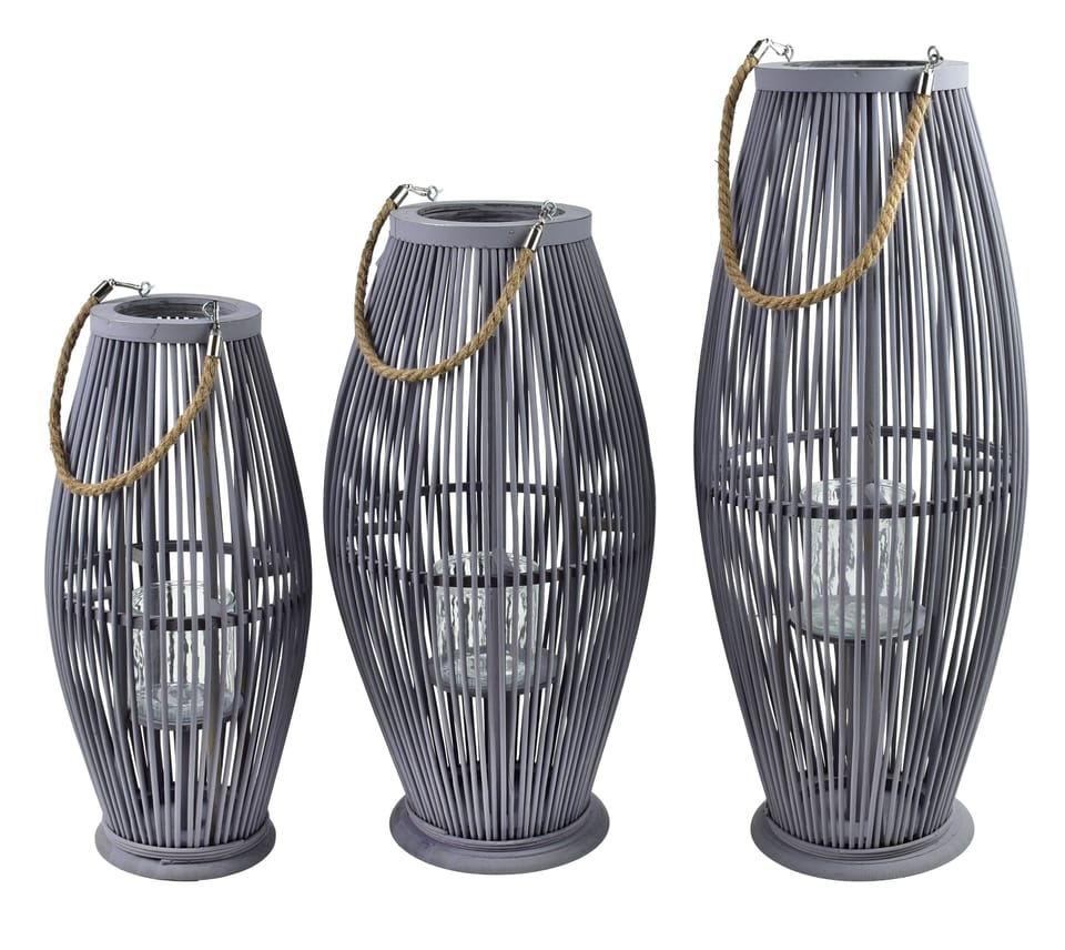 LUCIE Lampion fioletowo szary elegancki design MONDEX SINCE 1986Lampion LUCIE to doskonały element dekoracyjny, który doda uroku każdemu wnętrzu. Jego fioletowo-szara kolorystyka oraz unikalna forma sprawiają, że staje się on nie tylko źródłem światła, ale także praktycznym akcentem strefy relaksu.Kluczowe cechyFioletowo-szara kolorystyka wprowadza harmonię do przestrzeniWyjątkowy kształt z otwartą strukturą podkreśla nowoczesny stylWykonanie z drewna zapewnia trwałość i wysoką jakośćElegancka forma lampionu idealna do różnorodnych aranżacjiWymiary 30x30x60cm/83cm idealne do postawienia na stole lub podłodzeDlaczego warto wybrać kolekcję LUCIELampion LUCIE to połączenie nowoczesnego designu z naturalnym materiałem, co sprawia, że jest idealnym rozwiązaniem zarówno do wnętrz, jak i na taras. Jego elegancki wygląd oraz otwarta konstrukcja sprawiają, że światło świeczki doskonale się rozprasza, tworząc przytulny i nastrojowy klimat.Zastosowanie i pielęgnacjaLampion LUCIE najlepiej sprawdzi się w różnych aranżacjach, od przytulnego salonu po romantyczną kolację na świeżym powietrzu. Aby zachować jego piękno, wystarczy przetrzeć go wilgotną ściereczką. Unikać silnych detergentów.Dane techniczneWymiary 30x30x60cm/83cmMateriał drewnoKolor fioletowo szaryKompatybilność idealny do wewnętrz i na zewnątrz