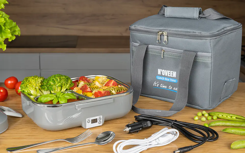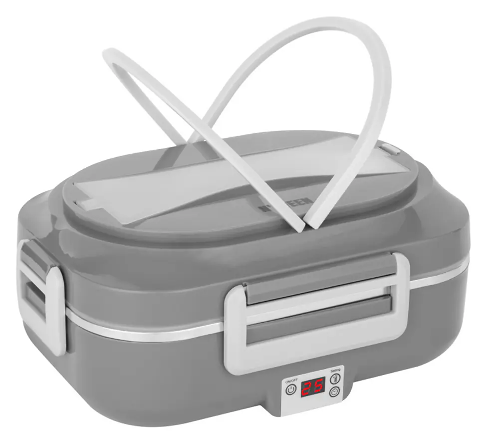 Lunch box wyposażony jest w element grzewczy PTC, który umożliwia podgrzanie jedzenia do 60° C w ciągu 30 minut. Zestaw posiada 3-komorowego pojemnika o pojemności 1L , łatwego do umycia w zmywarce. Dodatkowo podgrzewacz posiada wyświetlacz LED, dzięki któremu możemy ustawić temperaturę oraz opóźnienie uruchomienia (8h).