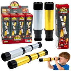 Luneta piracka teleskop 12 x 30 mm to doskonały gadżet dla małych odkrywców, miłośników przygód oraz zabaw tematycznych w piratów. Regulowana konstrukcja pozwala na wysuwanie i składanie lunety, co nadaje jej realistyczny wygląd i zwiększa atrakcyjność podczas zabawy. Klasyczna kolorystyka w odcieniach złota i srebra sprawia, że teleskop prezentuje się efektownie i przyciąga uwagę dziecka.