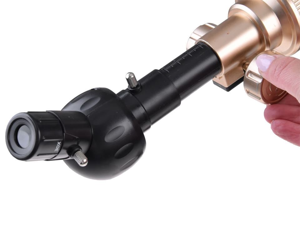 - Szukacz - służy do celowania. Ustaw teleskop na wybrany obiekt, a następnie dostosuj obraz w szukaczu i obserwuj przez okular.