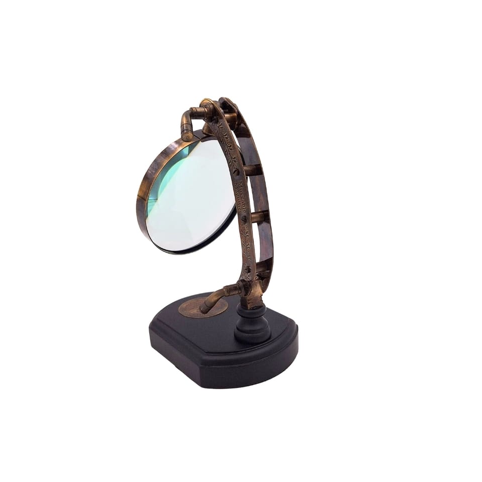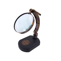 Lupa na drewnianej podstawie z możliwością regulacji – MFS312/4 Elegancka lupa wolnostojąca w stylu retro, nie tylko ozdobi, ale i wspomoże wzrok! Możliwość regulacji – Wysokość 20cm. Informacje podstawowe: Średnica szkła powiększającego: 10 cm Wysokość maksymalna przy szkle ustawionym poziomo: 20 cm Wymiary podstawy: 13 x 9,5 cm Powiększenie: 3,5x Podstawa drewniana Obudowa i ramię mosiężne