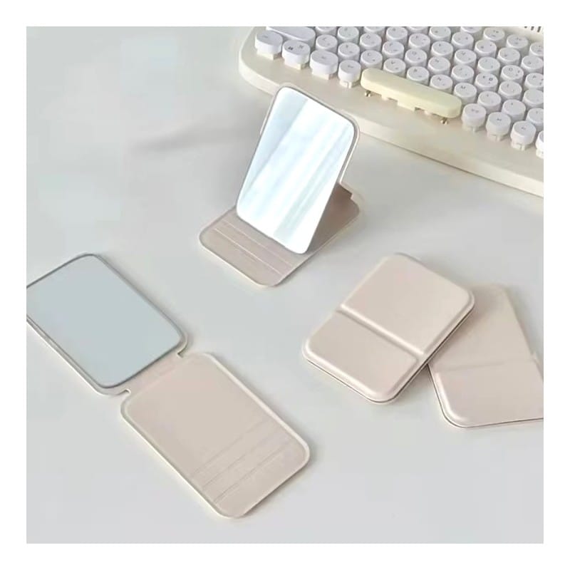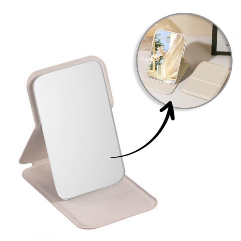 Lusterko kosmetyczne z ekoskóry, otwierane, stojące, do torebki kremowe L17K