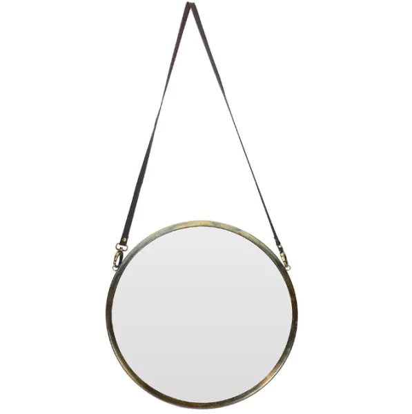 Lustro okrągłe na sznurku ze sztucznej skóry 42 cm
