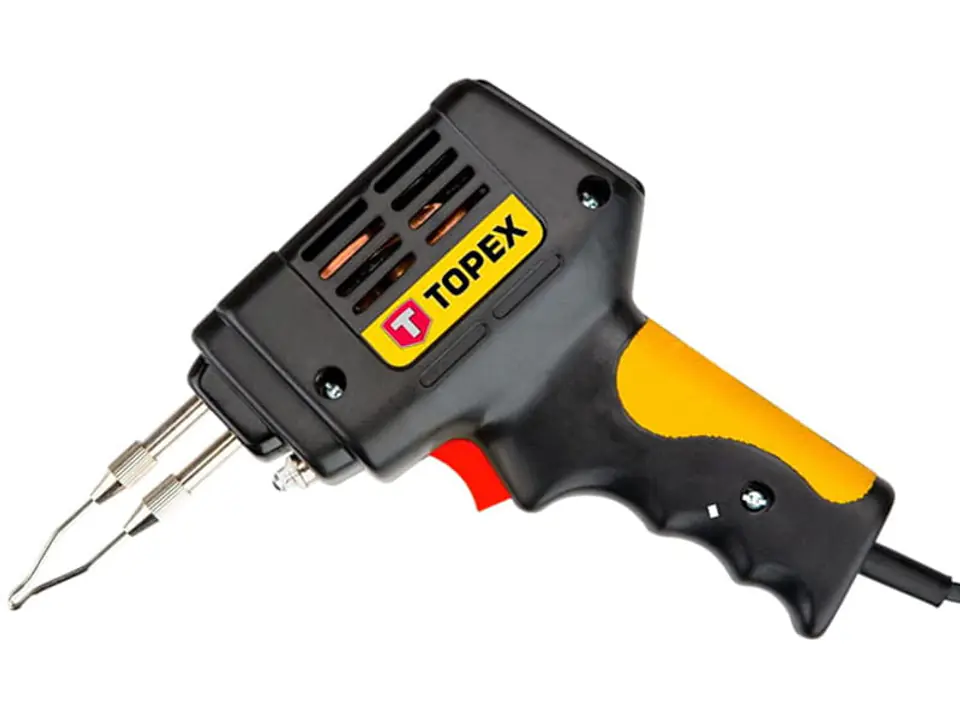 Lutownica transformatorowa TOPEX ma moc 100W. Służy do łączenia metalowych części za pomocą niskotopliwego spoiwa np. cynowo ołowiowego. Jest idealna do łączenia elementów o większym przekroju jak np. elektryczne instalacje samochodowe, elektryczne instalacje domowe niskiego napięcia. Lutownica Topex ma wbudowaną żarówkę, która podświetla miejsce lutowania a to znacznie podnosi komfort pracy. Aby służyła nam długo i bezawaryjnie musimy się zastosować do kilku wskazówek; wymieniamy grot jak tylko zauważymy przewężenie, czyścimy grot po każdej pracy, nie otwieramy obudowy urządzenia, zawsze odkładamy lutownicę na odpowiedni stojak, przestrzegamy czasu pracy urządzenia, używamy tylko sprawdzone i wysokiej jakości kalafonie i pasty spawalnicze, nie spawamy rzeczy które są pod napięciem i nie pracujemy w warunkach zbyt dużej wilgotności lub w obecności palnych gazów i rozpuszczalników.