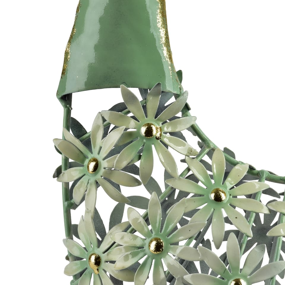 Figura gęsi LYDIA o wymiarach 30,5 16 54 cm to subtelna, dekoracyjna ozdoba, która zachwyca delikatnością barw i lekkością formy. Jej metalowa konstrukcja została wykończona w eleganckiej palecie bieli i jasnego turkusu, tworząc wrażenie świeżości i łagodności. Zestawienie tych kolorów nadaje figurze niepowtarzalnego uroku . gęś wygląda, jakby była częścią pastelowej, malarskiej scenerii.Smukła sylwetka i dopracowane detale sprawiają, że dekoracja prezentuje się lekko i harmonijnie, niezależnie od tego, czy ustawiona jest w salonie, holu, na tarasie czy w ogródku. LYDIA wnosi do przestrzeni delikatny, przyjazny charakter, a jej obecność łagodnie ożywia aranżację, nie dominując jej.To ozdoba, która potrafi dodać wnętrzu miękkości i subtelnego koloru, tworząc atmosferę spokoju i radosnej elegancji. Zapakowana jednostkowo w folię bąbelkową.