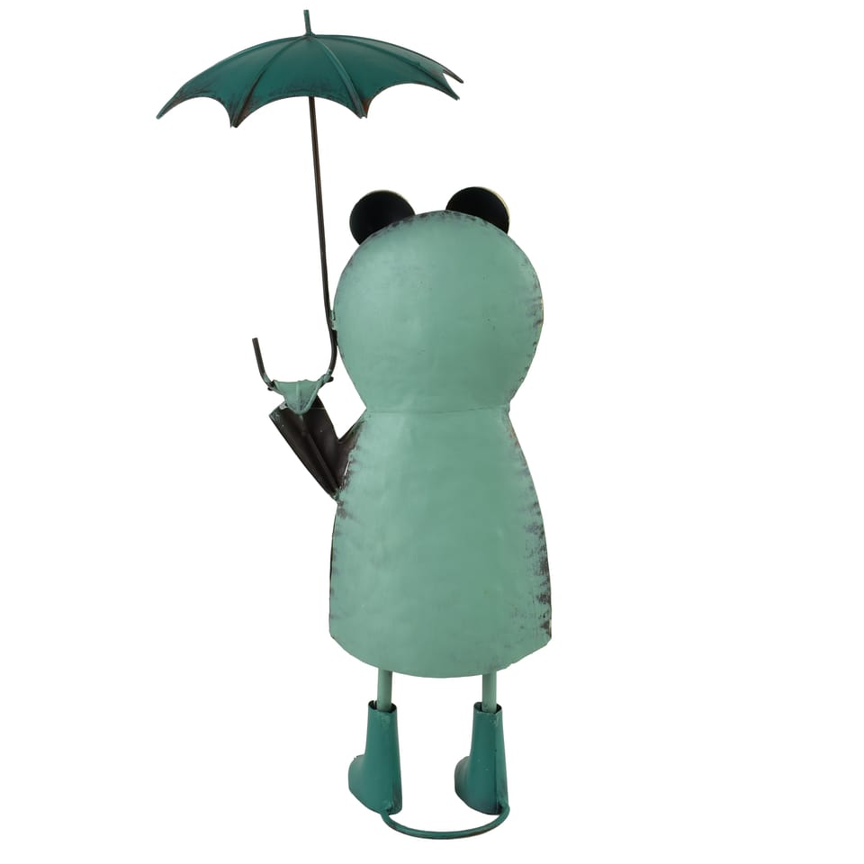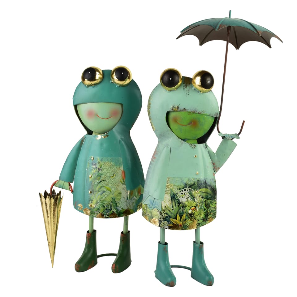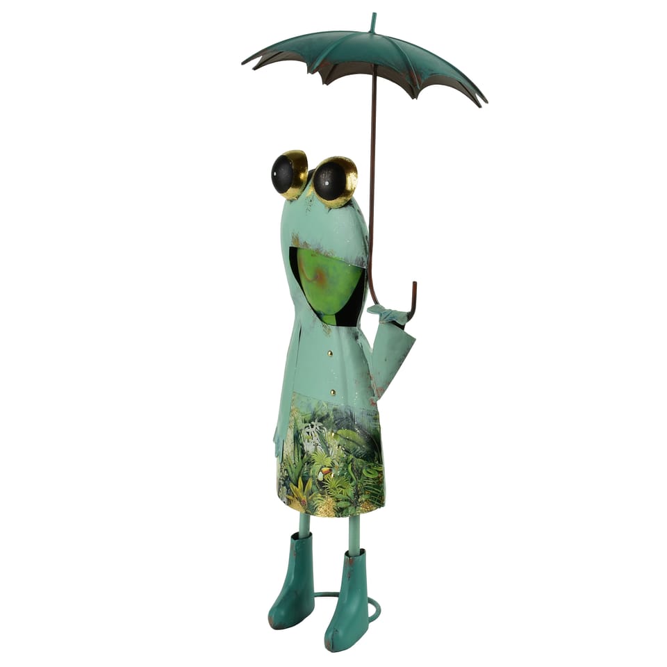 Figura żabki LYDIA o wymiarach 24 20 55,3 cm to radosna i pełna charakteru dekoracja, która natychmiast przyciąga spojrzenia. Wykonana z metalu, prezentuje się lekko i zabawnie, a jej wyraziste, sympatyczne oczy nadają jej wyjątkowy, niemal bajkowy urok. Żabka trzyma w dłoni rozłożoną parasolkę, co tworzy wrażenie, jakby zatrzymała się na chwilę w drodze przez ogród. Gotowa na każdą pogodę i zawsze uśmiechnięta. Dominujące odcienie zieleni podkreślają jej naturalny, ogrodowy charakter, a pastelowe przejścia barw dodają dekoracji głębi i miękkości. Dzięki swojej wysokości figura staje się wyrazistym akcentem zarówno w salonie, jak i na tarasie czy w zielonej przestrzeni wokół domu.To ozdoba, która wnosi do aranżacji lekkość, humor i ciepło, tworząc atmosferę pełną luzu i przyjaznego uroku. Idealna dla osób kochających dekoracje z nutą fantazji. Nie zostawiajmy żabki na mrozie i na deszczu!