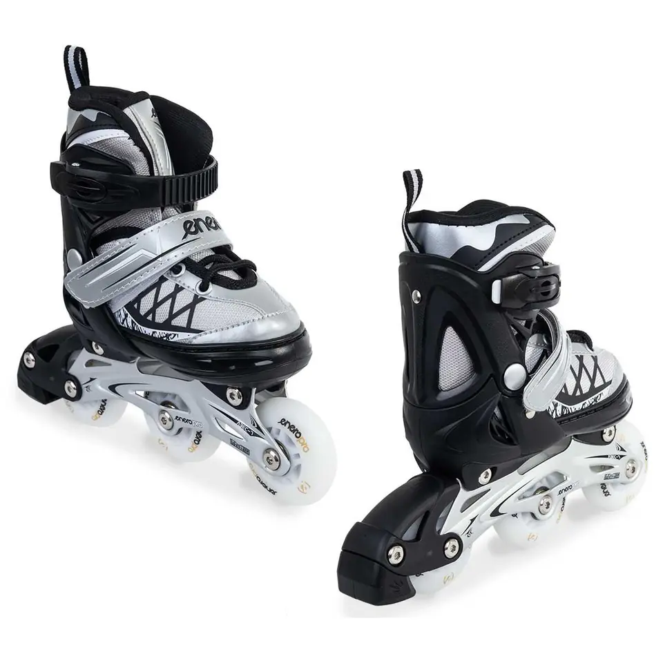 ŁYŻWOROLKI - WROTKI - ŁYŻWY 4W1 ENERO PRO LED charakteryzują bardzo dobrym właściwościom jezdnym. Przyczyniły się do tego lekkie aluminiowe płozy oraz niezawodny system 3 zapięć, składający się z regulowanej klamry Quick Lock, paska na rzep oraz sznurowadeł, mocno trzymających stopy. Wszystko to sprawia, że model ten sprawdza się dobrze w każdych warunkach, dostarczając niepowtarzalnych wrażeń podczas jazdy w każdej z 4 postaci. Ich wysoka jakość gwarantuje trwałość i odporność na uszkodzenia mechaniczne. ŁYŻWOROLKI - WROTKI - ŁYŻWY 4W1 ENERO PRO LED gwarantują czystą przyjemność z jazdy.