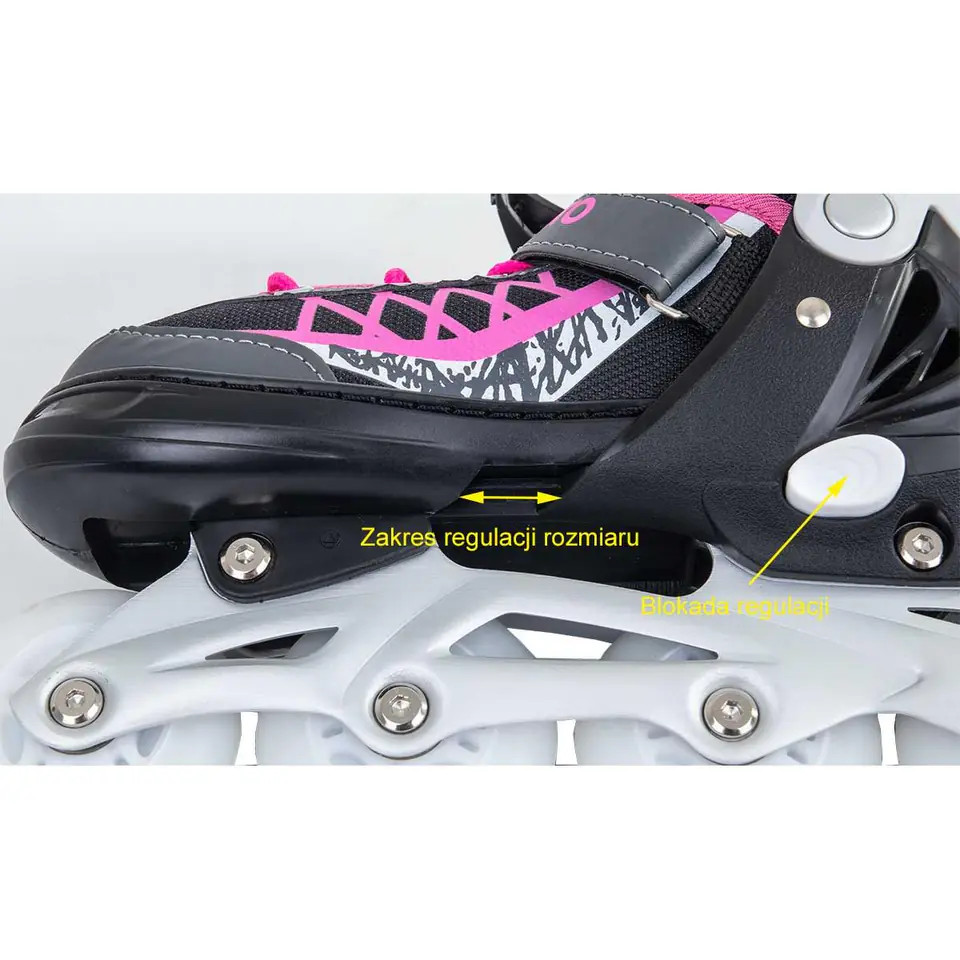 - można z nich korzystać przez cały rok dzięki funkcji 4w1 i kilka lat dzięki regulacji rozmiaru!prosta i szybka zmiana podstawy jezdnej zapewnią łatwy i bezproblemowy w montaż każdej opcjimleczne, świecące kółka PU LED zadbają o bezpieczeństwo i nowoczesny styloddychająca, półprzepuszczalna wewnętrzna membrana z pianki zapewni komfort jazdy przez cały dzieńregulacja i zapięcie w trzech miejscach ułatwią utrzymanie równowagi oraz mocno utrzyma stopę w buciewykonane z wysokiej jakości materiałów będą służyć przez wiele sezonówlekkie aluminiowe płozy zapewnią bezpieczne podparcie stopyspecjalny przycisk pozwoli na łatwą i szybką regulację rozmiarudołączone do płoz ochraniacze zadbają o ostrze łyżwyidealne na prezent dzięki kolorystyce, materiałowi i wzorom podążającymi za obowiązującymi trendami
