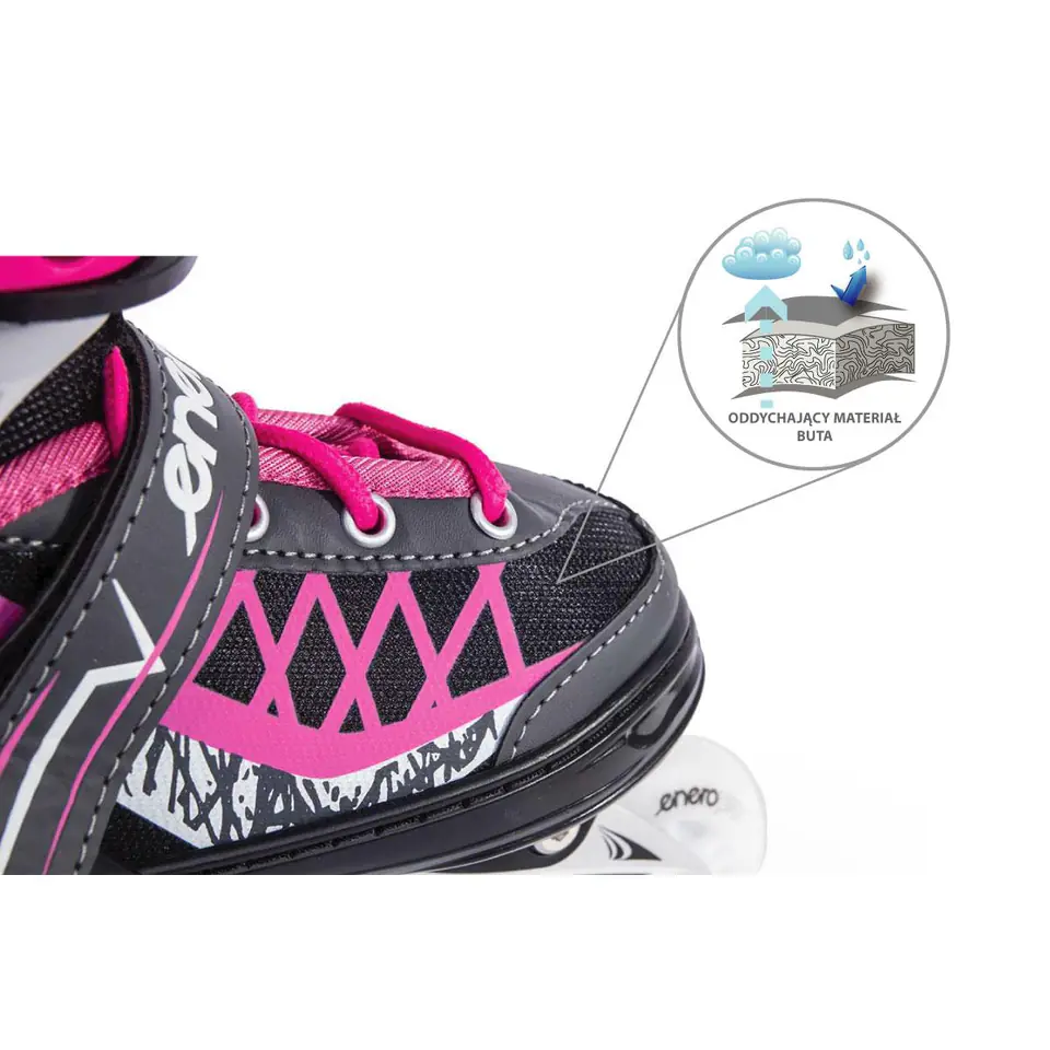 ŁYŻWOROLKI - WROTKI - ŁYŻWY 4W1 ENERO PRO LED charakteryzują bardzo dobrym właściwościom jezdnym. Przyczyniły się do tego lekkie aluminiowe płozy oraz niezawodny system 3 zapięć, składający się z regulowanej klamry Quick Lock, paska na rzep oraz sznurowadeł, mocno trzymających stopy. Wszystko to sprawia, że model ten sprawdza się dobrze w każdych warunkach, dostarczając niepowtarzalnych wrażeń podczas jazdy w każdej z 4 postaci. Ich wysoka jakość gwarantuje trwałość i odporność na uszkodzenia mechaniczne. ŁYŻWOROLKI - WROTKI - ŁYŻWY 4W1 ENERO PRO LED gwarantują czystą przyjemność z jazdy.