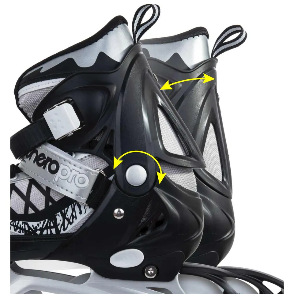 ŁYŻWOROLKI - WROTKI - ŁYŻWY 4W1 ENERO PRO LED charakteryzują bardzo dobrym właściwościom jezdnym. Przyczyniły się do tego lekkie aluminiowe płozy oraz niezawodny system 3 zapięć, składający się z regulowanej klamry Quick Lock, paska na rzep oraz sznurowadeł, mocno trzymających stopy. Wszystko to sprawia, że model ten sprawdza się dobrze w każdych warunkach, dostarczając niepowtarzalnych wrażeń podczas jazdy w każdej z 4 postaci. Ich wysoka jakość gwarantuje trwałość i odporność na uszkodzenia mechaniczne. ŁYŻWOROLKI - WROTKI - ŁYŻWY 4W1 ENERO PRO LED gwarantują czystą przyjemność z jazdy.