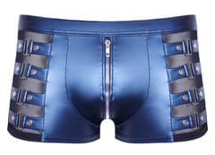 Fajny styl z dbałością o szczegóły! Obcisłe, podkreślające figurę spodnie od NEK z zamkiem błyskawicznym w kieszeni. W chłodnym niebieskim metalicznym matowym wyglądzie z paskami z ćwiekami po bokach.