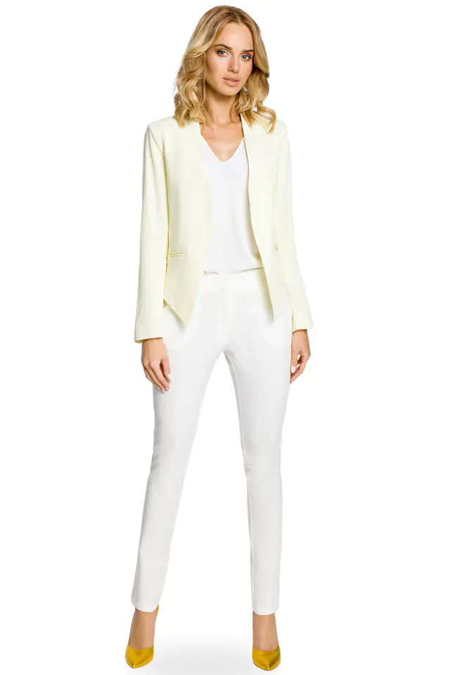 M031 Krótki żakiet marynarka damska narzutka - żółty kolor żółty, rozmiar L
