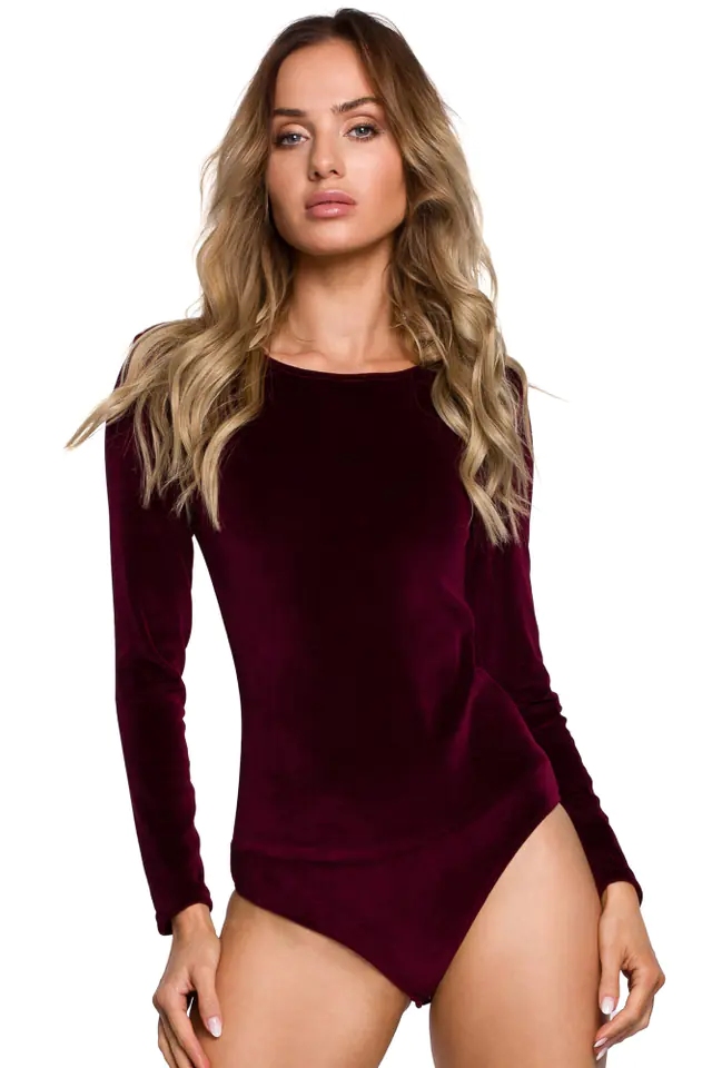 M567 Welurowe body z długimi rękawami - bordowe kolor Bordowy, rozmiar M